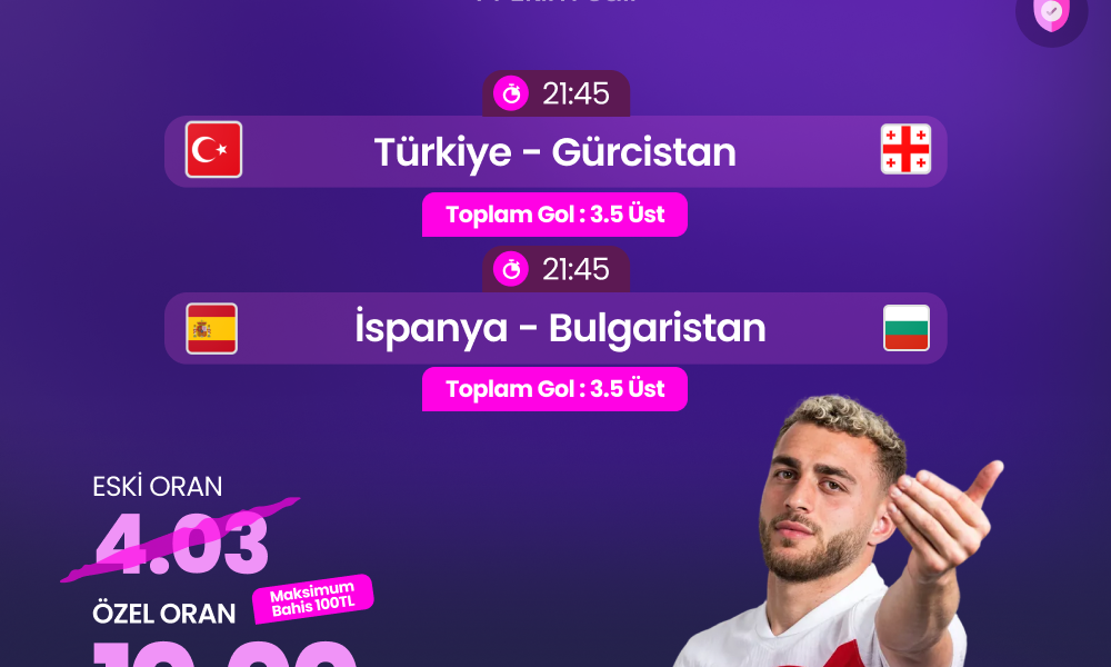 Türkiye Gürcistan karşılaşması için bu kadar yüksek bir özel oran gerçekten nadir görülüyor. Milli maçlarda böyle kampanyalar çok daha değerli oluyor çünkü herkes Türkiye’yi desteklemek istiyor.